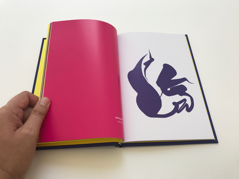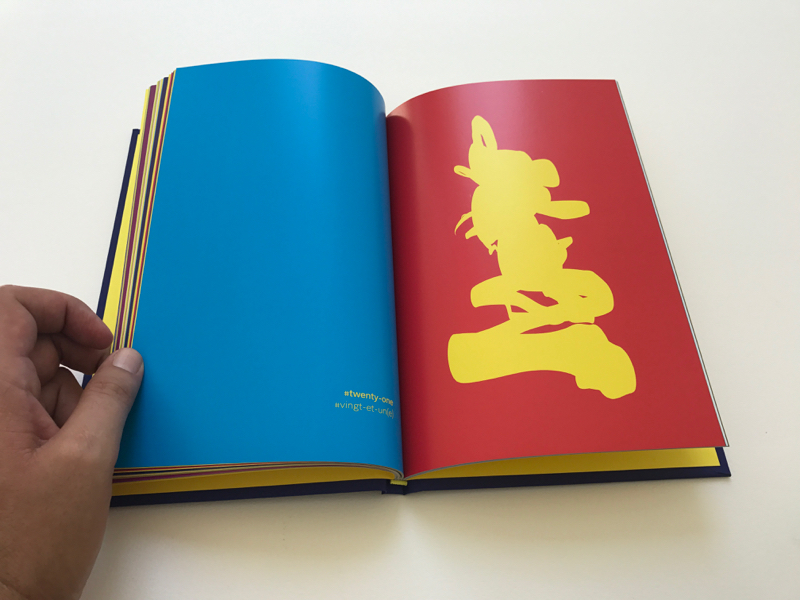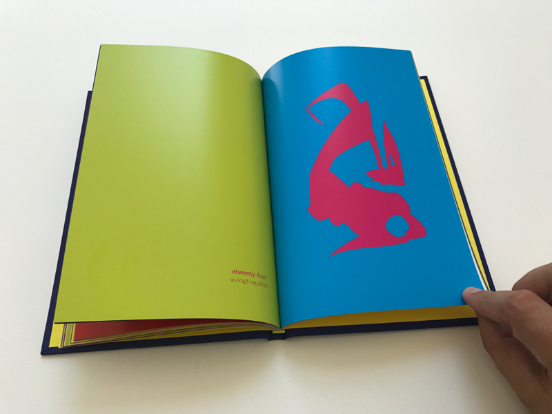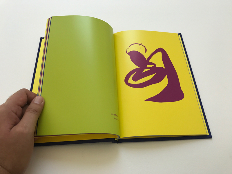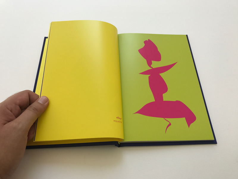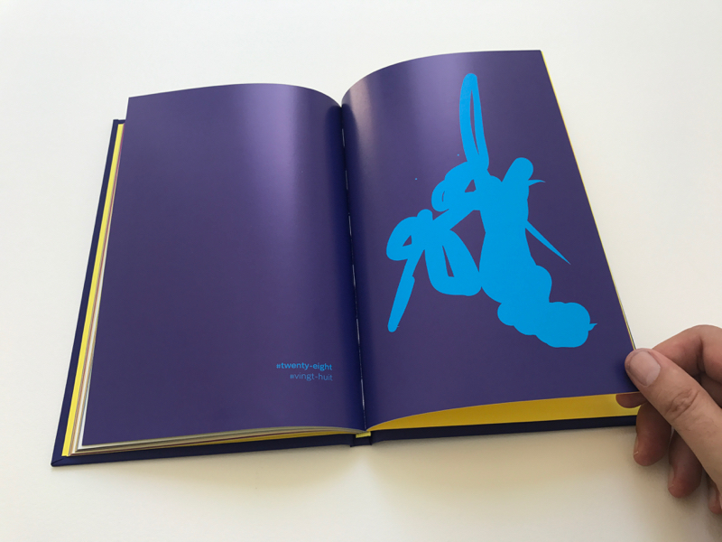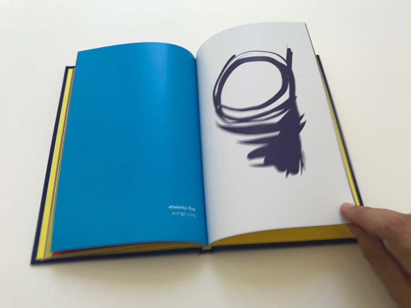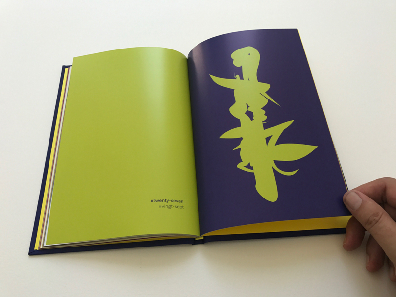 Avec seulement un doigt, le trait est réalisé en noir et blanc et en tout petit — ce qui permet d’aller à l’essentiel de la forme — de manière spontanée et intuitive. Les dessins sont ensuite récupérés tels quels en vectoriels sur un ordinateur, sans retouche, seulement mis en couleur.