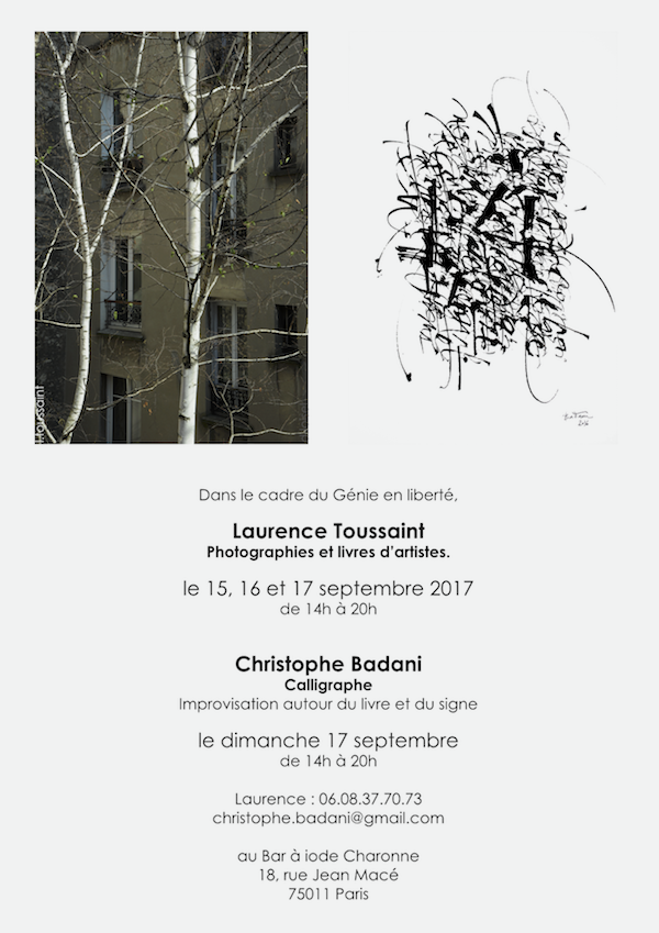 Improvisation autour du livre et du signe — Dimanche 17 septembre 2017 de 14 h 00 à 20 h 00 au Bar à Iode Charonne. 18 rue Jean-Macé – 75011 Paris.