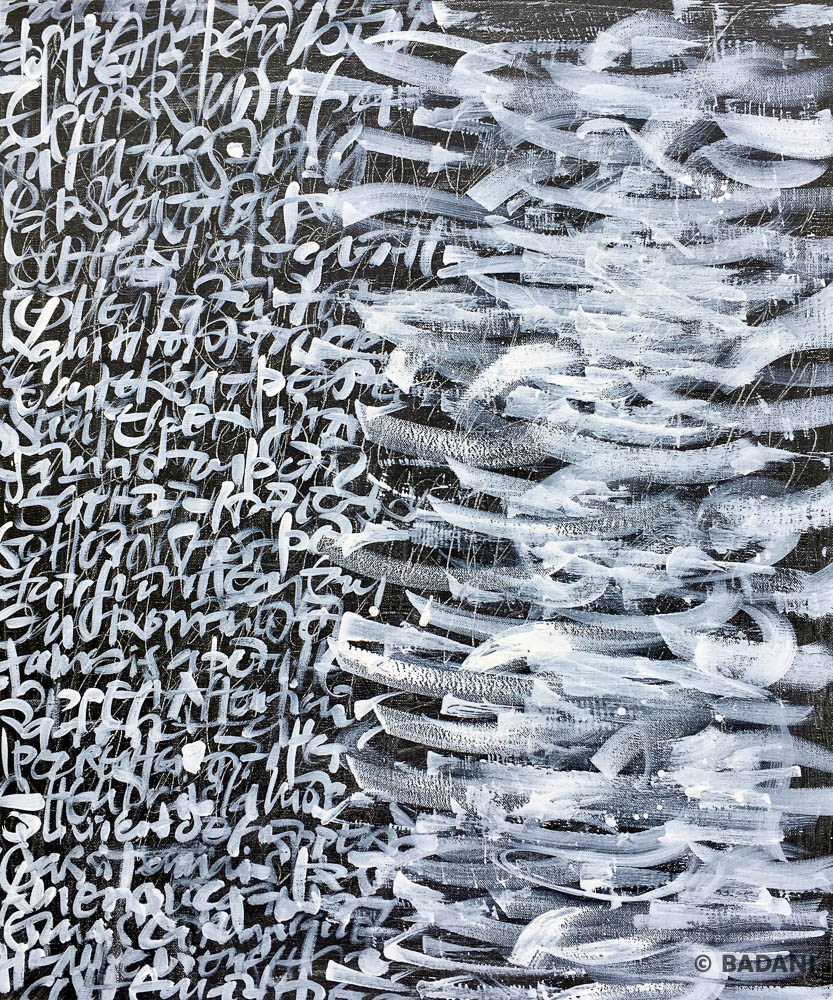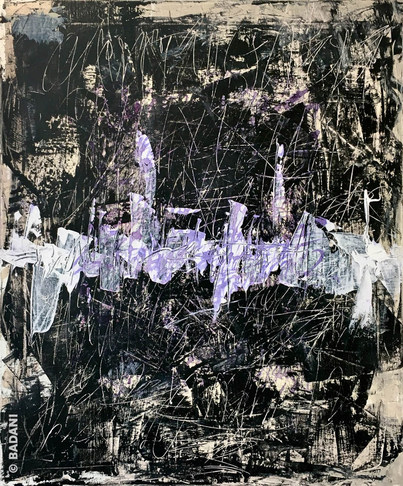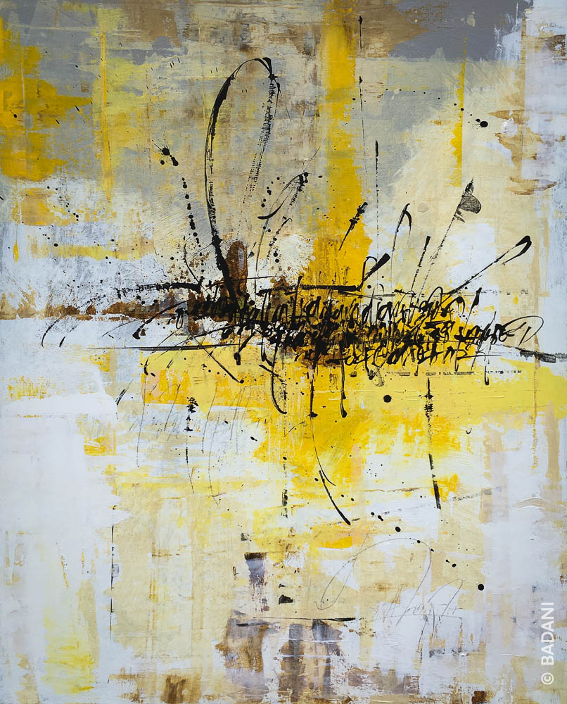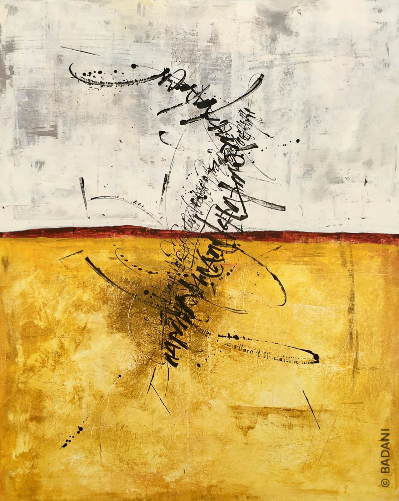 T200725. Peinture abstraite, acrylique sur toile. Christophe Badani, peintre calligraphe.